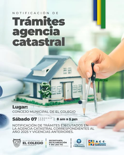 Este sábado realizaremos la notificación de trámites adelantados por la Agencia Catastral, correspondientes al año 2025 y vigencias anteriores. Los esperamos en el Concejo Municipal de El Colegio, en jornada continua de 8:00 a.m. a 5:00 p.m., para brindar información… Seguir leyendo →