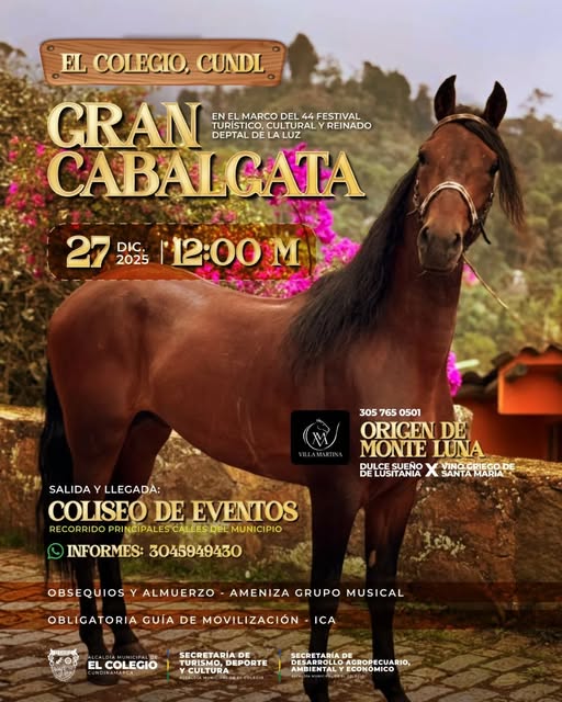 Organiza y acompaña: Alcaldía Municipal de El Colegio, en cabeza de @diegolopezspalomo, la Secretaría de Turismo, Deporte y Cultura, liderada por @pedroacastilloreina y la Secretaría de Desarrollo Agropecuario, Ambiental y Económico, liderada por @paoalexaperilla.