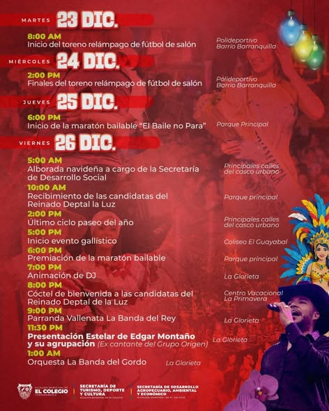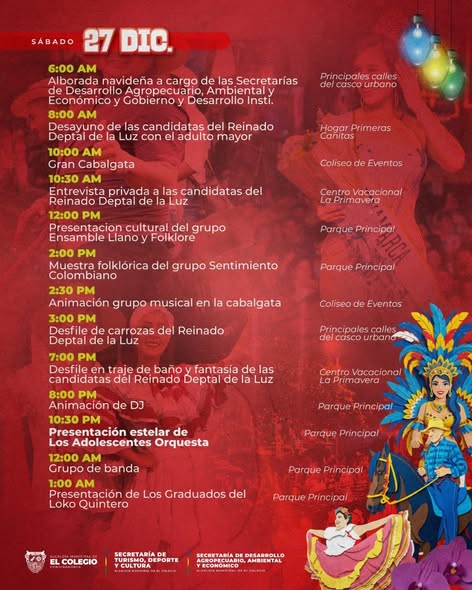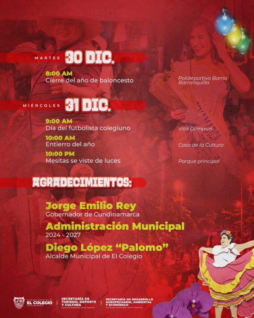 Este gran evento es una invitación de la Alcaldía Municipal de El Colegio, en cabeza del alcalde @diegolopezspalomo, la Secretaría de Turismo, Deporte y Cultura, liderada por @pedroacastilloreina, y la Secretaría de Desarrollo Agropecuario, Ambiental y Económico liderada por @paoalexaperilla, quienes continúan trabajando por el fortalecimiento de la cultura y el turismo en nuestro municipio
