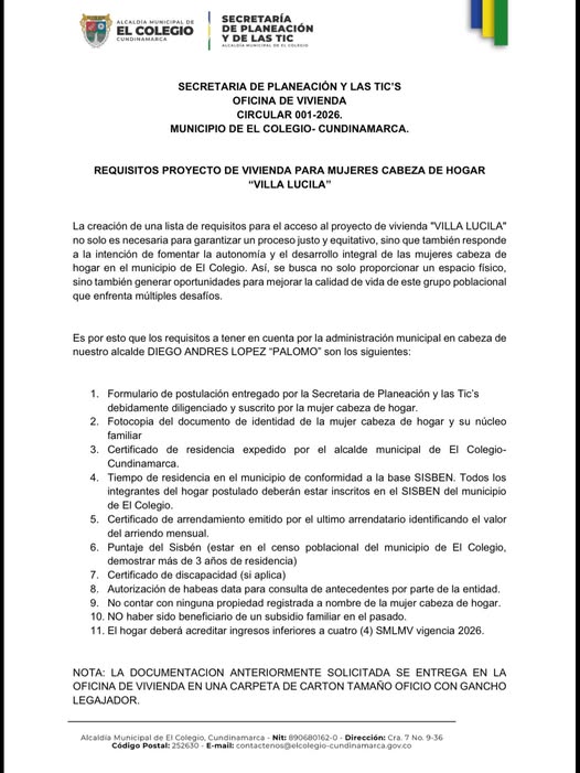 Invitamos a las interesadas a revisar los requisitos y acercarse a la Oficina de Vivienda – Secretaría de Planeación y las TIC.